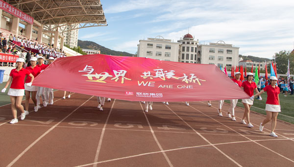 2016年9月29日-30日,威?;鹁娓呒夹g(shù)產(chǎn)業(yè)開發(fā)區(qū)第七屆運動會在哈爾濱工業(yè)大學(xué)(威海)隆重舉行。作為高區(qū)水平最高、規(guī)模最大的體育盛會,本屆運動會吸引了來自區(qū)直各部門、區(qū)內(nèi)各企業(yè)共51家單位、近1600名運動員踴躍參賽。聯(lián)橋集團方隊在運動會開幕式上的精彩展示震撼全場,并勇奪團體第五名。 聯(lián)橋集團對此次運動會高度重視,精心進行組織策劃,公司在運動會開幕式中氣勢宏大的方隊震撼全場,成為一道靚麗的風(fēng)景線。全體隊員頭戴白色時尚貝雷帽,身穿熱力四射的紅色短袖上衣,女生白色超短裙和鞋子,成為全場視線的焦點。身材高挑的女旗手,帥氣的護旗隊員走在隊伍最前面,英姿颯爽。公司黨委副書記親自擔(dān)任領(lǐng)隊,率隊前行。緊接著10名靚麗的隊員,在主席臺前方,瞬間拉開了“與世界 共聯(lián)橋 WE ARE ONE”巨幅卷軸,恢弘大氣,展現(xiàn)了聯(lián)橋走向世界的動人風(fēng)采。特別是其后,紅色熱烈、動感活潑的聯(lián)橋吉祥物“躍躍”,炫目全場,博得全體觀眾的熱烈掌聲和由衷贊譽,將開幕式推向高潮。運動員方隊聲勢浩大,96名隊員邁著整齊的步伐,高舉小海星,響亮地喊著“聯(lián)橋集團,奮勇爭先;走向世界,再創(chuàng)輝煌”的口號,鏗鏘有力,振奮人心,充分展現(xiàn)了聯(lián)橋人團結(jié)拼搏、追求卓越的企業(yè)精神,博得了主席臺領(lǐng)導(dǎo)和觀眾經(jīng)久不息的掌聲。