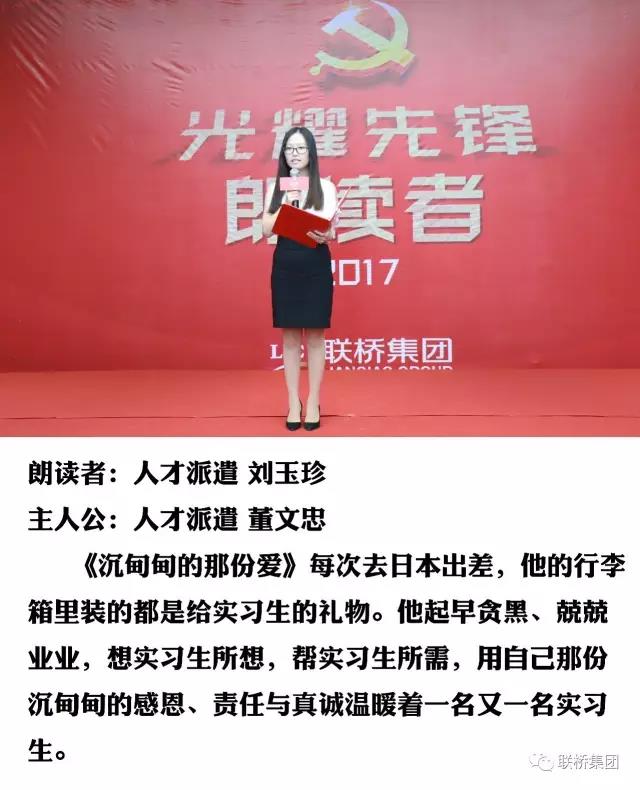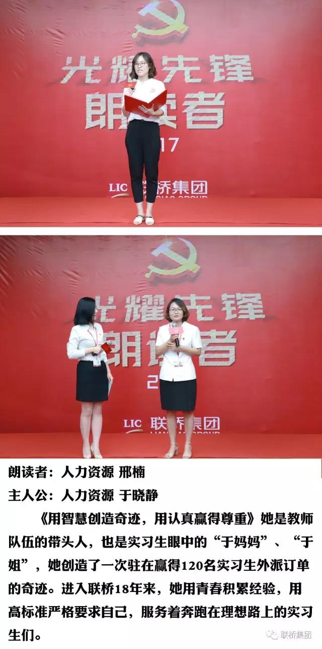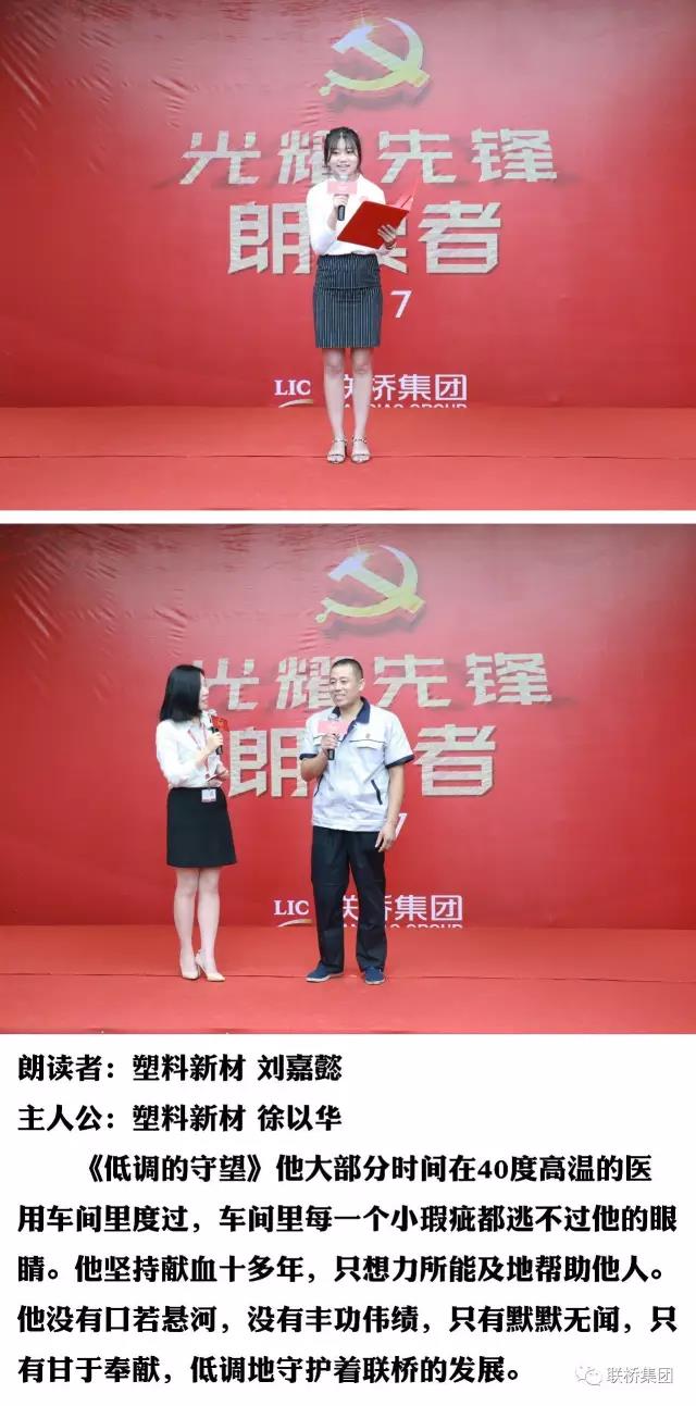 2017年7月26日下午,聯(lián)橋集團(tuán)黨委舉辦了“光耀先鋒朗讀者”活動(dòng),150名黨員齊聚一堂,用《朗讀者》的節(jié)目形式,講述聯(lián)橋光耀先鋒優(yōu)秀黨員的感人故事。集團(tuán)黨委書(shū)記、董事長(zhǎng)慕镕鍵,集團(tuán)董事、塑料新材黨支部書(shū)記慕衛(wèi)波,集團(tuán)黨委副書(shū)記宋威麗等領(lǐng)導(dǎo)出席了活動(dòng)。