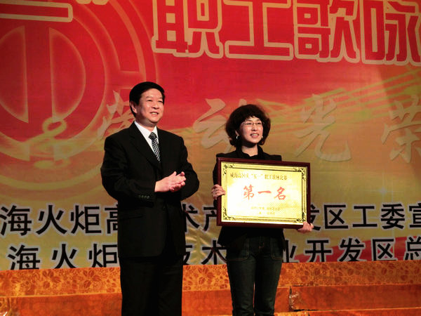 比賽中,合唱隊(duì)隊(duì)員們整齊亮麗的著裝,高昂振奮的風(fēng)貌,鏗鏘有力的歌唱,將比賽氣氛推向了高潮。一首《國(guó)家》將聯(lián)橋人熱愛祖國(guó)、心懷感恩的情懷一一道來,八位女員工的手語表演配合歌曲旋律顯得溫婉柔美;而《咱聯(lián)橋的人》則以投身高區(qū)建設(shè)和發(fā)展為依托,以詩朗誦和演唱相結(jié)合的方式,唱出了公司員工艱苦奮斗、敬業(yè)愛崗、團(tuán)結(jié)一心、共鑄輝煌的激情與豪邁,為建黨90周年和高區(qū)成立20周年獻(xiàn)上了一份厚禮。
