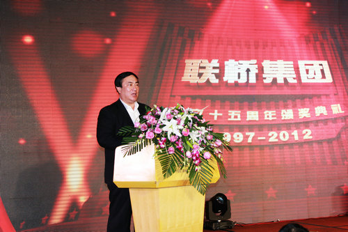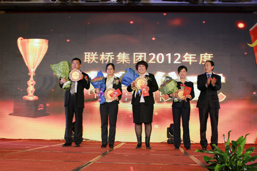 首先舉行的是聯(lián)橋集團(tuán)成立十五周年頒獎典禮,通過LED大屏幕,播放獲獎人員VCR及頒獎詞,頒獎領(lǐng)導(dǎo)簇?fù)砜蓯鄣男』ㄍ吓_,把精美的獎杯、鮮花和紅包,授予為聯(lián)橋集團(tuán)建設(shè)和發(fā)展做出卓越貢獻(xiàn)的2名聯(lián)橋棟梁、8名建業(yè)功勛和9名敬業(yè)典范。在2012年度表彰儀式上,對14個先進(jìn)部門和企業(yè)、58名先進(jìn)個人進(jìn)行了表彰。