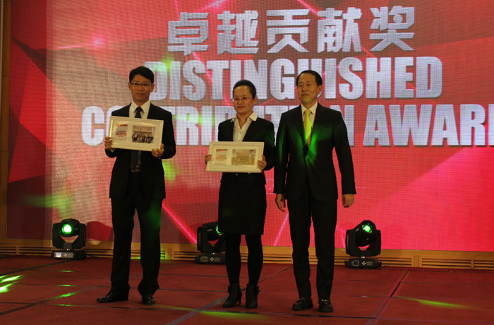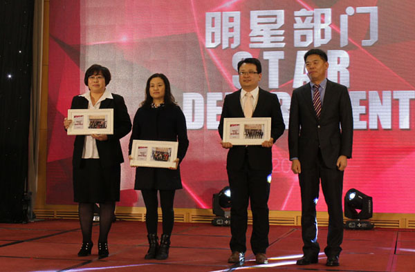 年會最莊嚴隆重的頒獎環(huán)節(jié),在激昂奮進的頒獎盛典預告片中拉開序幕。伴隨著氣勢磅礴、雄壯渾厚的音樂,鏗鏘有力、抑揚頓挫的頒獎詞,獲得“卓越貢獻獎”的進口部、紡織二部,“明星部門”的紡織六部、紡織十九部、日本業(yè)務二部,“先進部門”的紡織三部、日本業(yè)務三部、紡織九部、紡織十一、連心橋、紡織八部,“市場開拓獎”的美國市場部,“工業(yè)發(fā)展獎”的新材料科技公司,各獲獎單位代表和“項目引進貢獻獎”的李哲濱同志,站在了聯(lián)橋最高的領獎臺上,接受領導和同事們的祝福與喝彩,尊享屬于他們的榮耀和驕傲。孫曙光等63名先進個人也依次上臺領獎。這是對每個獲獎單位和個人一年來不懈努力的成績肯定,是精彩的綻放,是榮耀的象征,更是責任的擔當,希望的承載。