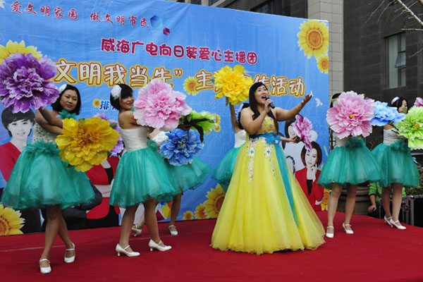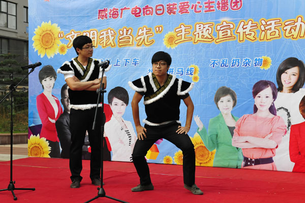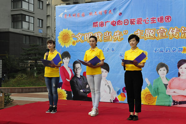 2015年10月16日,威海廣電攜手聯(lián)橋集團在集團海天一品社區(qū)噴泉廣場舉行“文明我當先”主題宣傳活動。威海電視臺愛心主播白雪、張帆、齊賽、劉偉豪等親臨現(xiàn)場,通過節(jié)目表演、知識講解,做游戲等形式,與大家互動交流,在輕松愉快中傳播“愛文明家園做文明市民”的理念。