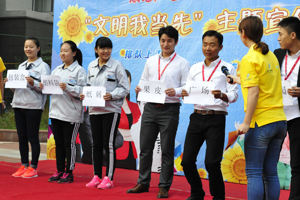 活動現(xiàn)場集團歌伴舞節(jié)目《春暖花開》載歌載舞,優(yōu)美的舞姿,動人的歌聲詮釋了美的理念,愛的魅力。主播團小合唱《文明家園》,聲情并茂,將文明的情感與和諧的君子風氣融入到歌曲的主旋律里,讓人深感共鳴。聯(lián)橋集團員工代表與主播團成員一起進行文明宣講,講述身邊的文明知識和文明小事,讓每個人意識到文明就在我們身邊,只要有心就可以傳遞文明的理念、進行文明的行動。簡單有趣的“文明蘿卜蹲”互動游戲,讓大家對排隊上下車、禮讓斑馬線、不亂扔雜物等文明行為有了更為深刻的理解和認同。